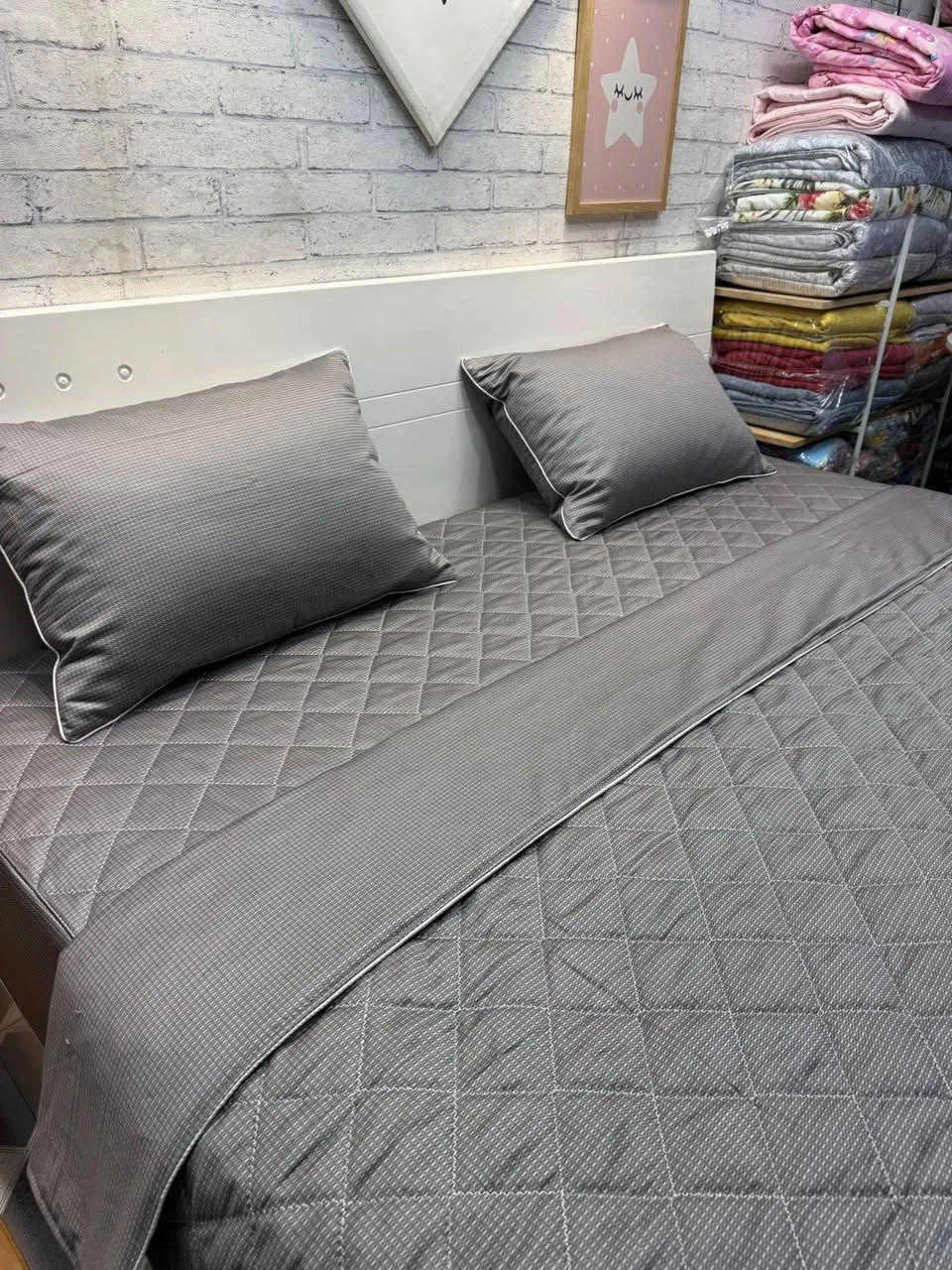 Bộ chăn ga gối cotton Hàn Quốc hoạ tiết xám