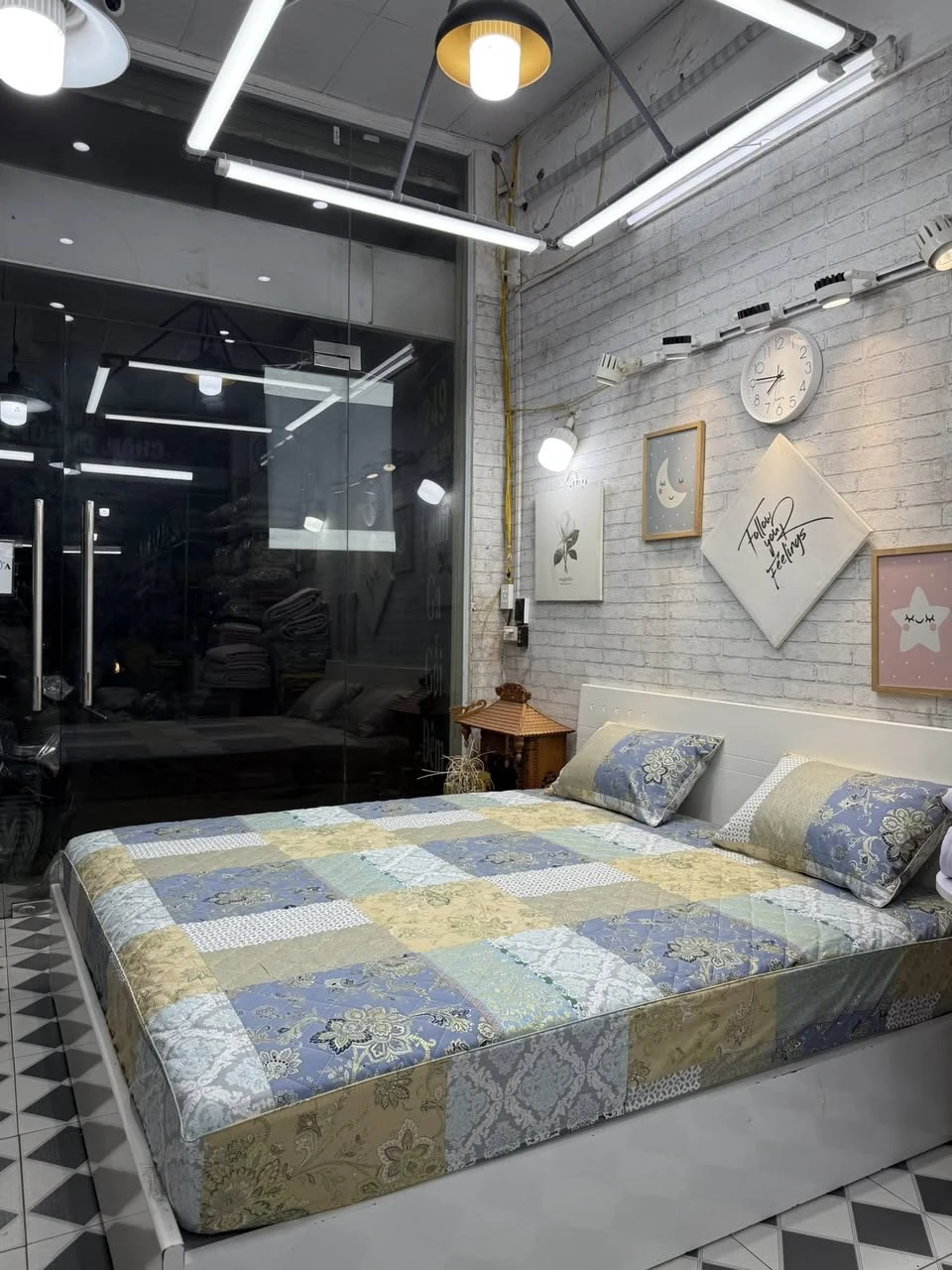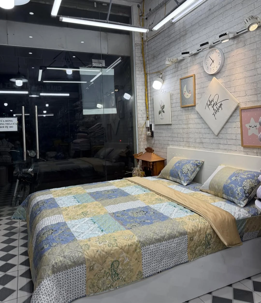 Bộ chăn ga gối cotton Hàn Quốc hoa văn lập thể sang chảnh lắm ạ.
