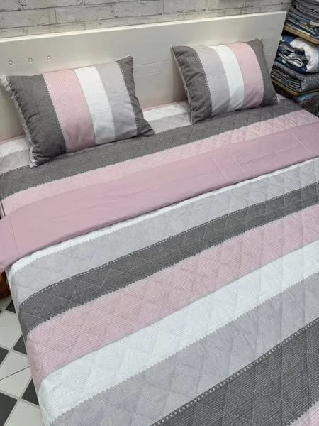 Bộ chăn ga gối cotton Hàn Quốc Kẻ Hồng xám xjnh lắm ạ.
