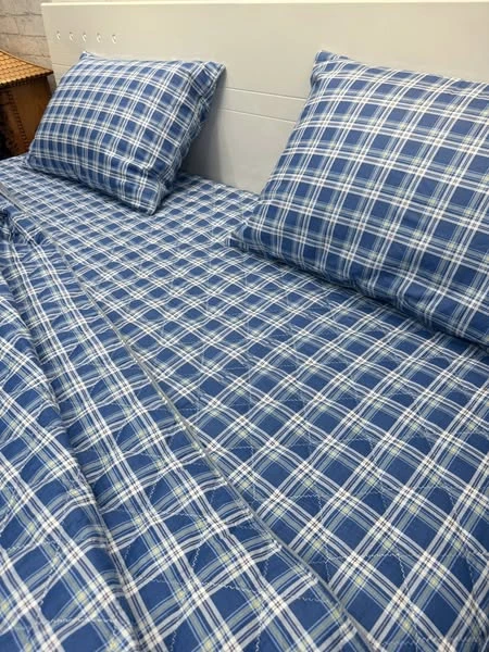 Bộ chăn ga gối cotton Hàn Quốc kẻ xanh phong cách