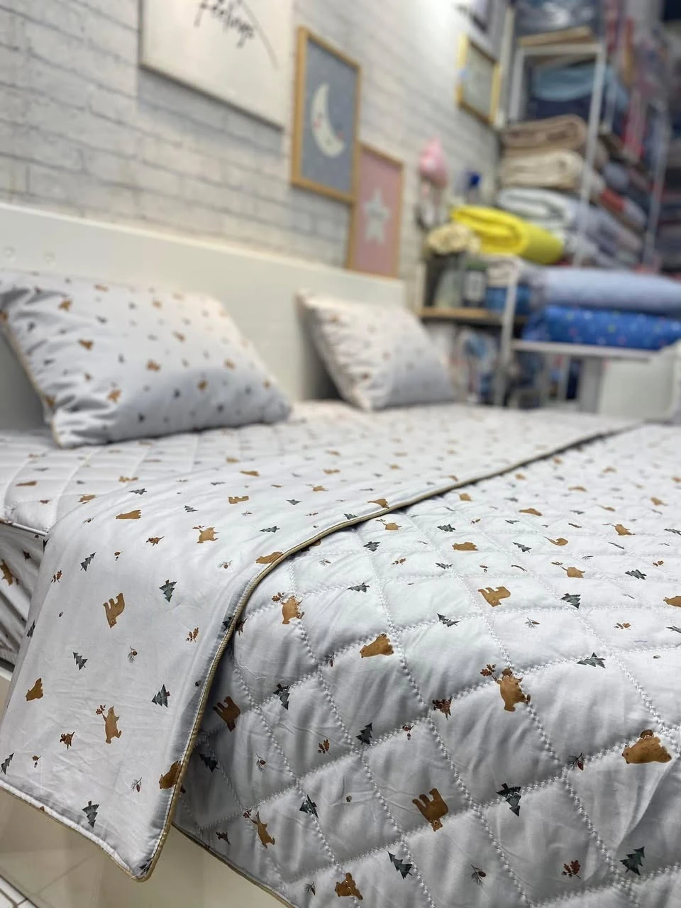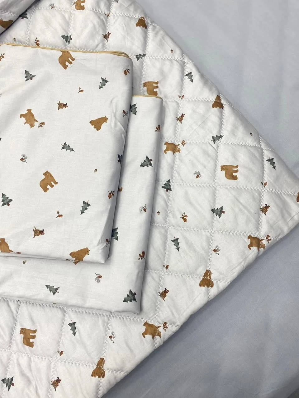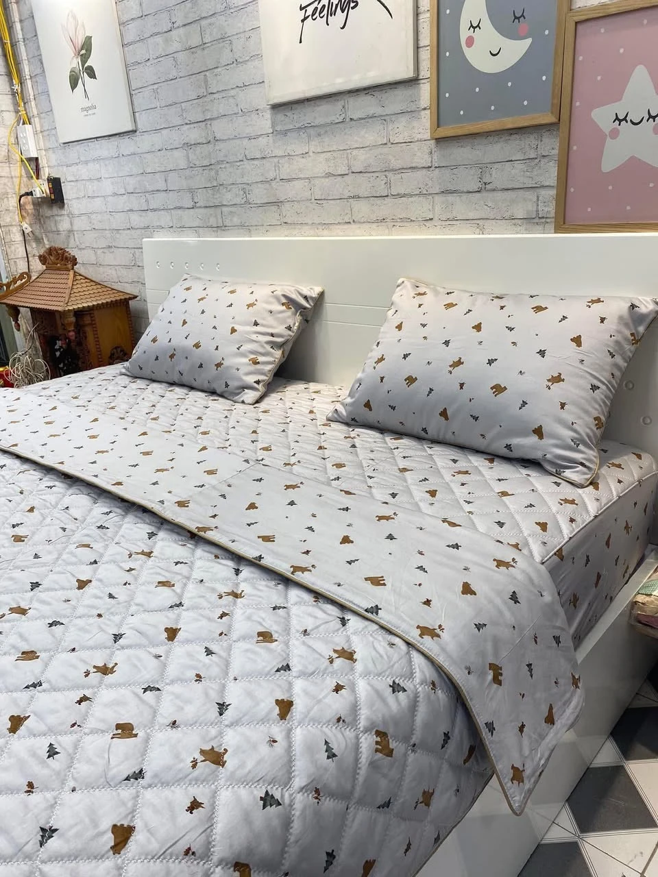 Bộ chăn ga gối cotton Hàn Quốc mẫu gấu cây thông ghi sang