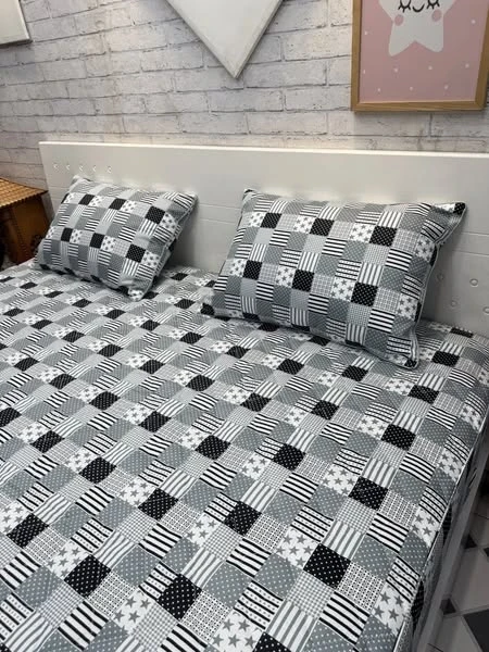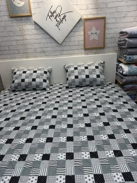 Bộ chăn ga gối cotton Hàn Quốc mẫu ô vuông