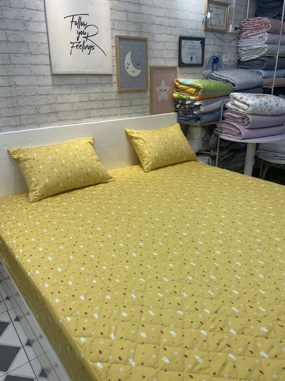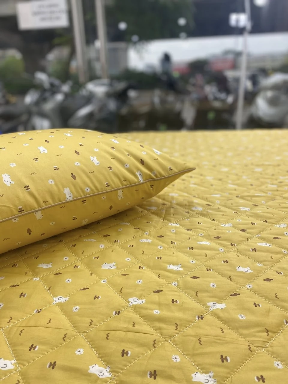 Bộ chăn ga gối cotton Hàn Quốc mầu vàng