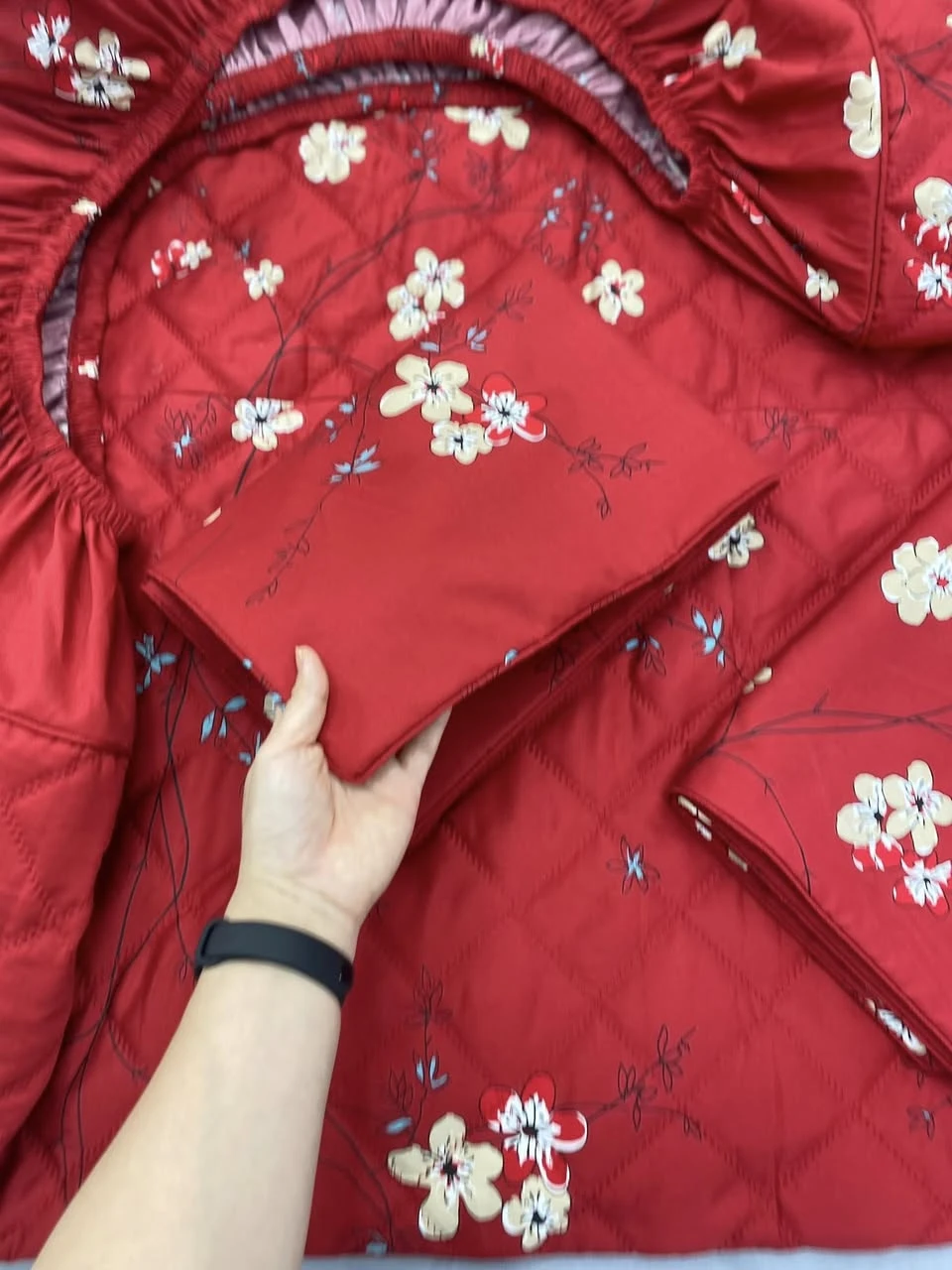 Bộ chăn ga gối Lụa Modal Hàn Quốc hoa đỏ