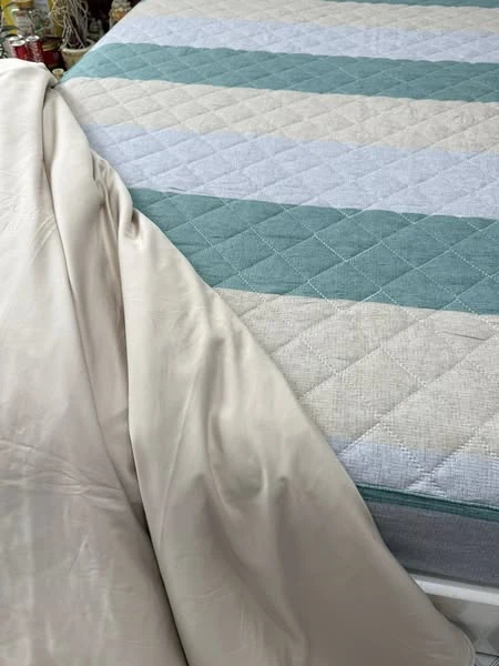 Bộ chăn ga gối Lụa Modal Hàn Quốc kẻ xanh ghi dịu mát