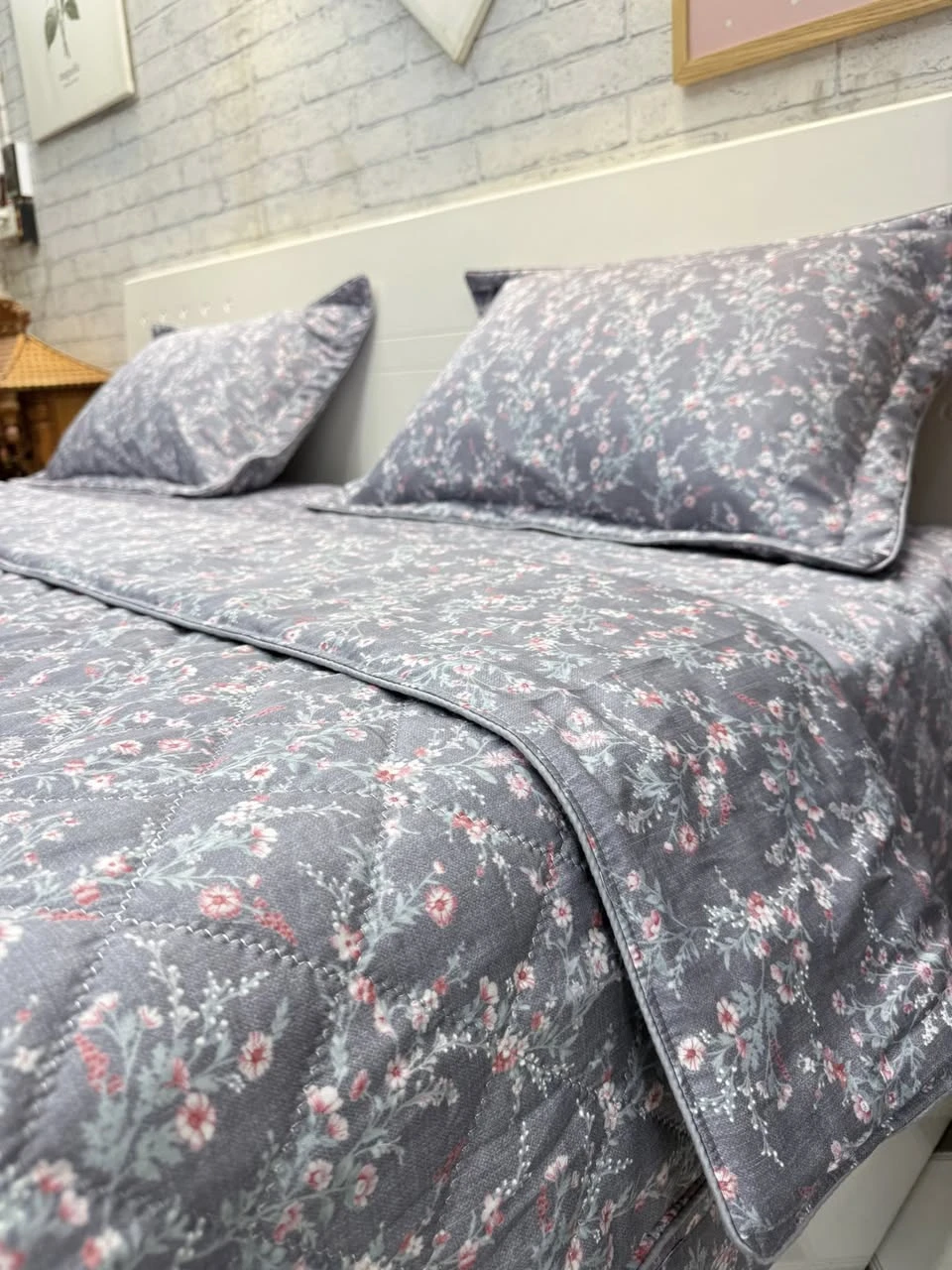 Bộ chăn ga gối Lụa Modal Hàn Quốc Set ga phủ hoa nhí nền ghi tím xjnh lắm ah