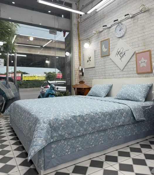 Bộ chăn ga gối Lụa Modal Hàn Quốc Set ga phủ hoa xanh như mẫu xjnh lắm ạ,