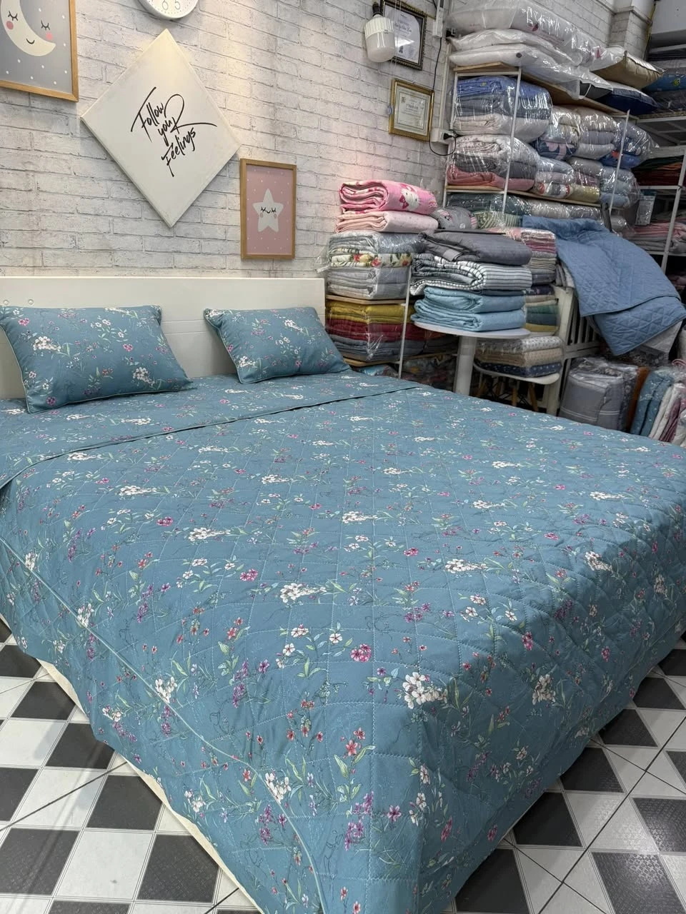 Bộ chăn ga gối phủ Lụa Modal Hàn Quốc hoa xanh xjnh lắm ạ. Shop nhận đặt may các kích thước.