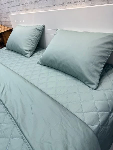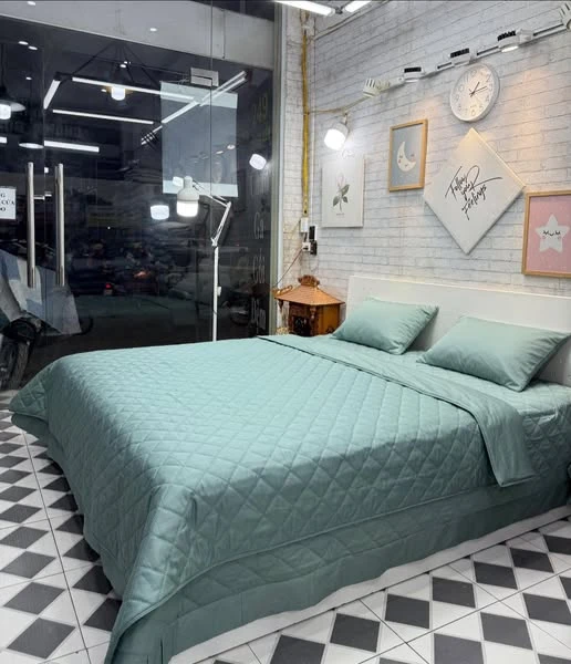 Bộ chăn ga gối phủ Lụa Modal Hàn Quốc màu xanh đẹp lắm ạ.