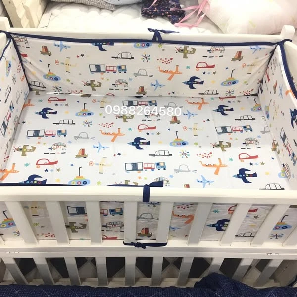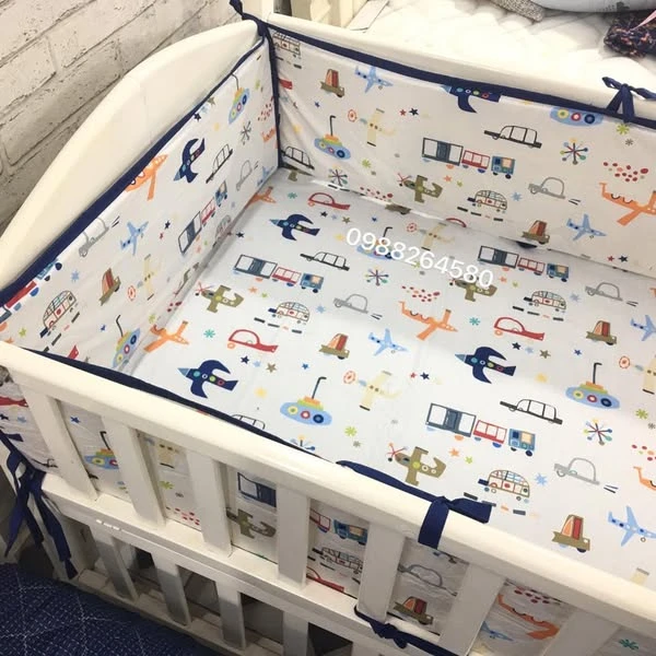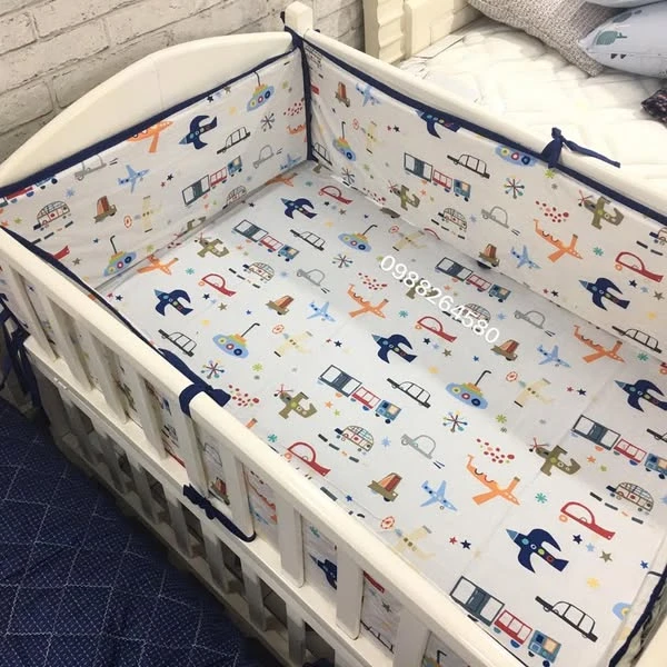Bộ sản phẩm Đệm-Ga-Quây cũi cho bé mẫu Ô tô máy bay xinh