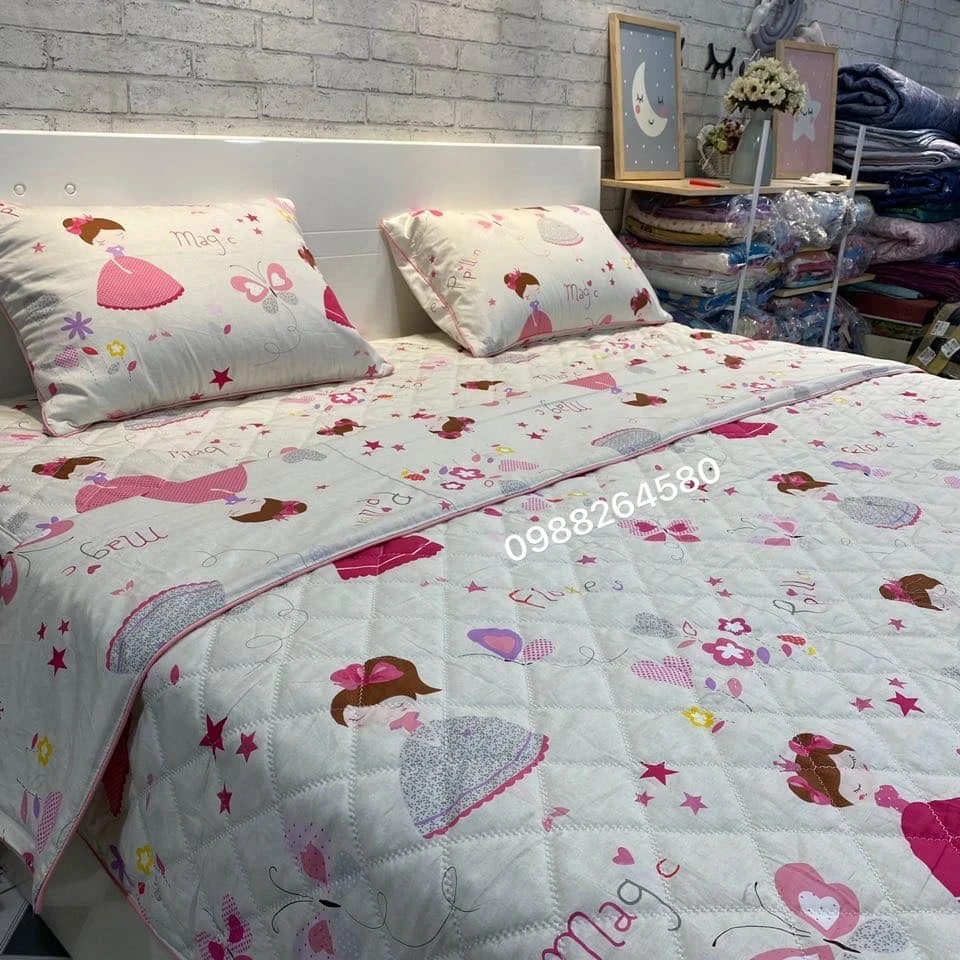 Set 1 Ga chun trần + 2 Vỏ gối 45*65cm baby xinh xắn vải cotton Hàn Quốc mềm mịn mát.