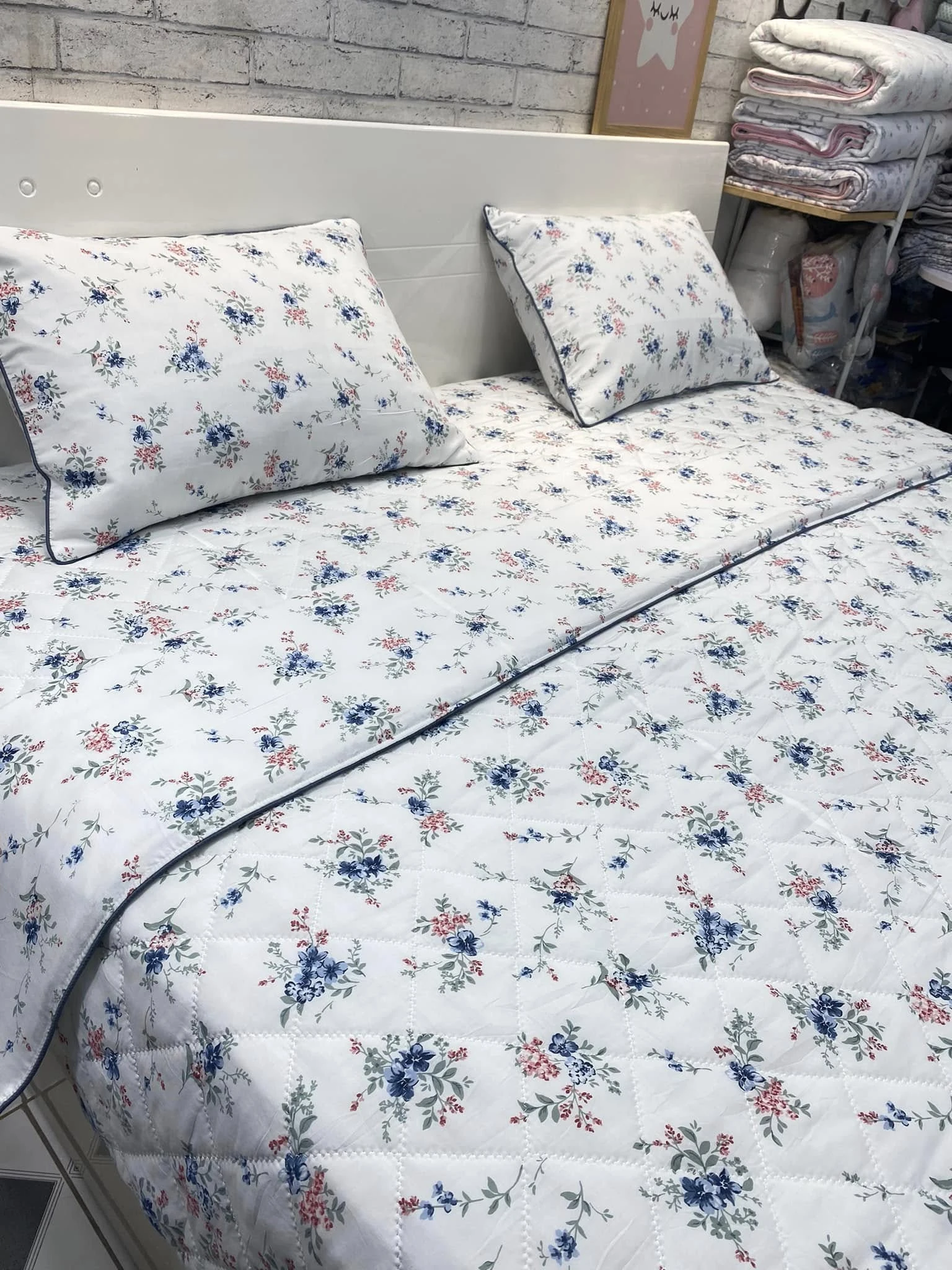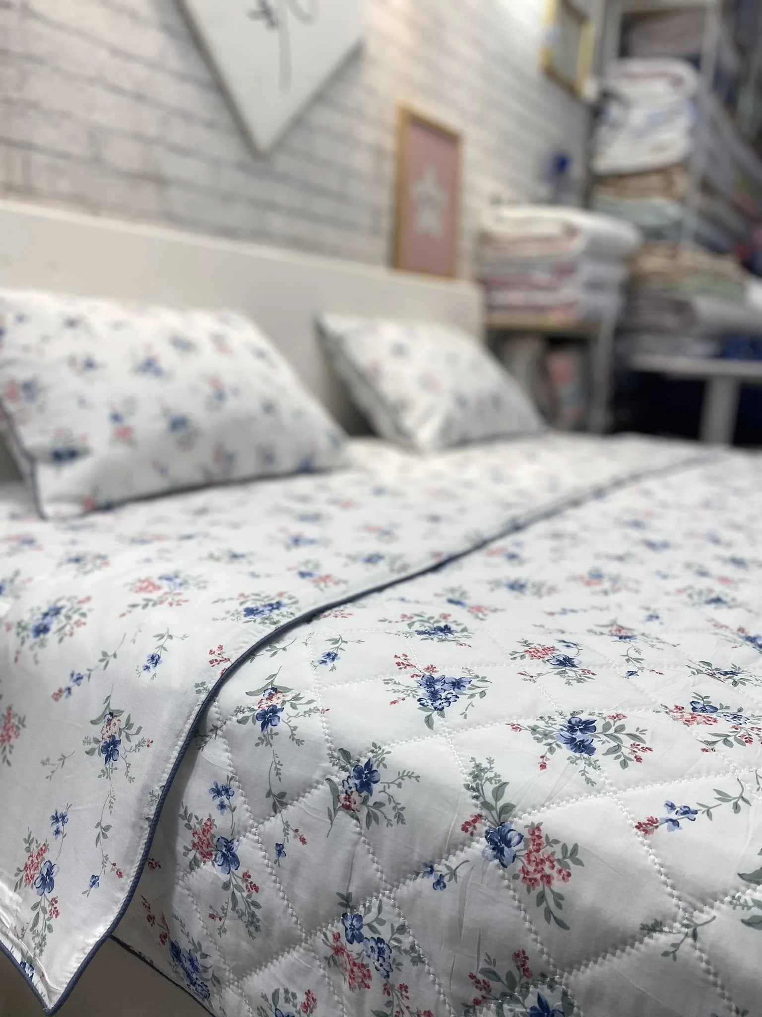 Set chăn ga gối hoạ tiết hoa nền trắng